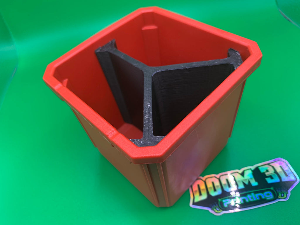 This divider fits snugly in the deep red Packout bins. The divider adds the ability to organize your Packout with more items. The divider has a snug fit with the top of the case so screws don’t fall out when the box is tossed around.