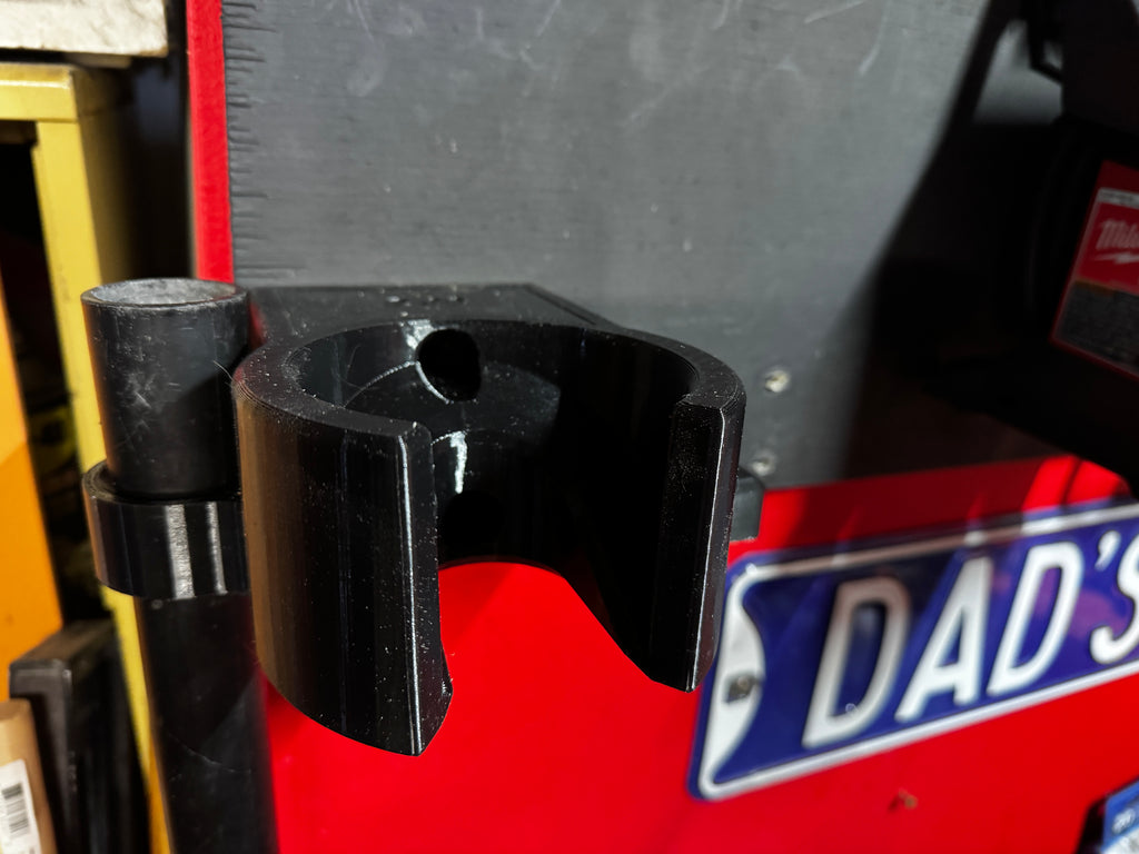 This is a great little wall mount for your M12 Milwaukee vacuum! Keeps it mounted up and off the floor…. A great addition to your Milwaukee wall!