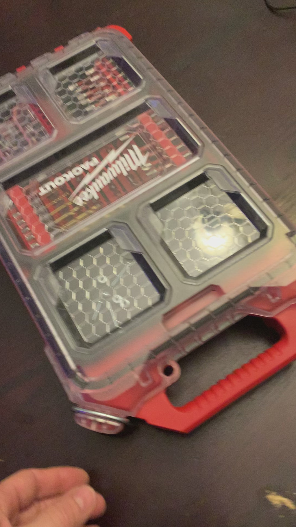 This magnetic bin fits snugly in the slim red Packout bins. The twist lock bottom allows it to lock into the top of the Packout bins and adds the ability to organize your Packout efficiently . The bin has a snug fit with the top of the case so screws don’t fall out when the box is tossed around.