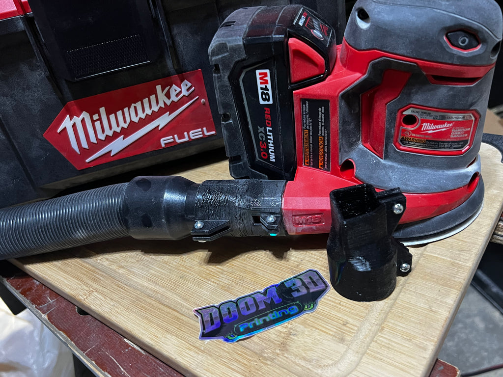 This adapter allows you connect the M18 vacuum to your Milwaukee palm sander