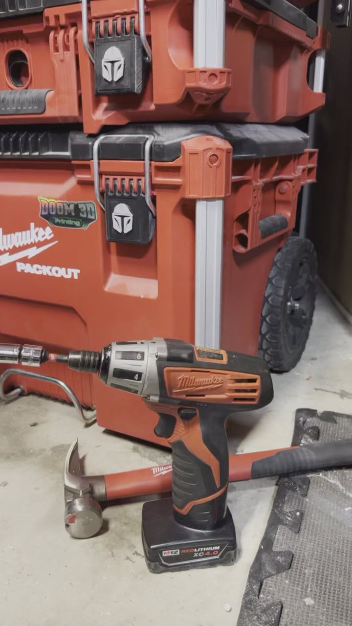 This clamp on side bracket attachments fit to the side posts of the Milwaukee Packout. Allows fast no hassle installation. Attach this adapter with ought dropping the rail or puncturing the rail…. I Added a #10 counterbore so you can screw in permanently. Each bracket has 2 5/16 metal threaded inserts for attaching items of your choice.